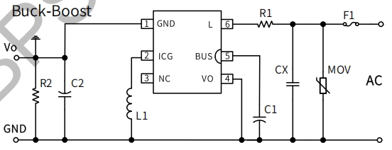 L(管腳 6):內(nèi)置整流橋二極管的陽極,連接到 AC 端。該管腳直接與交流輸入電源相連,通過內(nèi)置整流橋二極管將交流電轉(zhuǎn)換為直流電,為后續(xù)的電源轉(zhuǎn)換提供基礎(chǔ)。