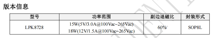 在保護(hù)功能方面,LPK8728提供了全面的保障,包括VCC鉗位/欠壓保護(hù)、FB腳電阻開(kāi)短路保護(hù)、輸出短路保護(hù)、輸出過(guò)壓保護(hù)以及過(guò)溫保護(hù)等。這些保護(hù)功能確保了芯片在各種異常工作條件下的穩(wěn)定性和可靠性。LPK8728采用SOP8L封裝,具有良好的散熱性能和易于集成的特點(diǎn)。