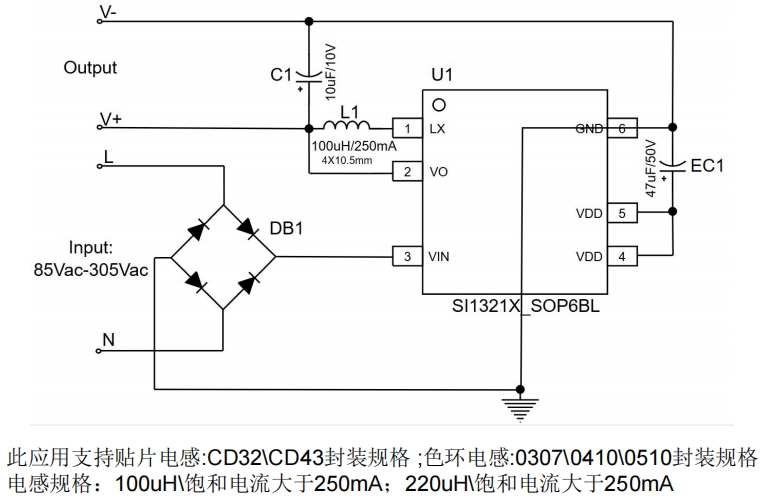 電感布局:將電感(如100μH/0.3A/CD43貼片電感)靠近芯片的LX引腳放置,以減少走線長(zhǎng)度和寄生電阻。