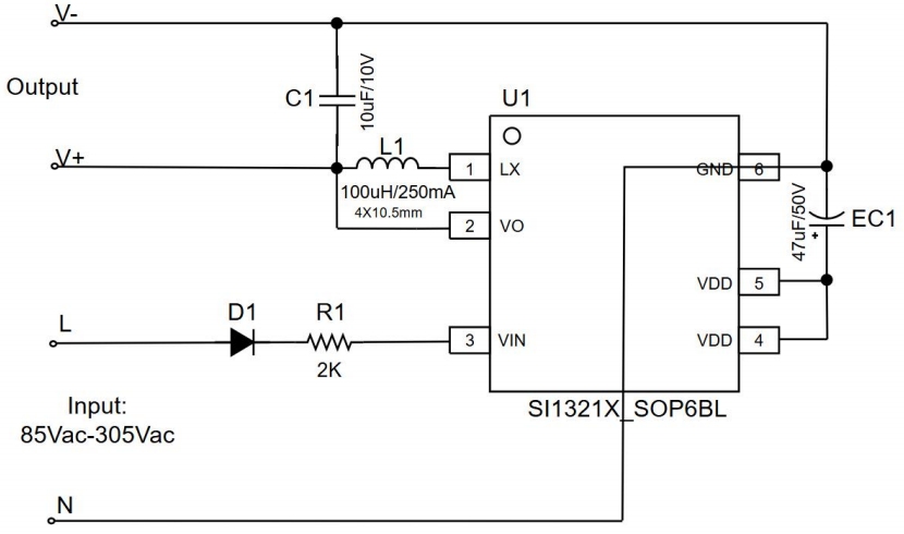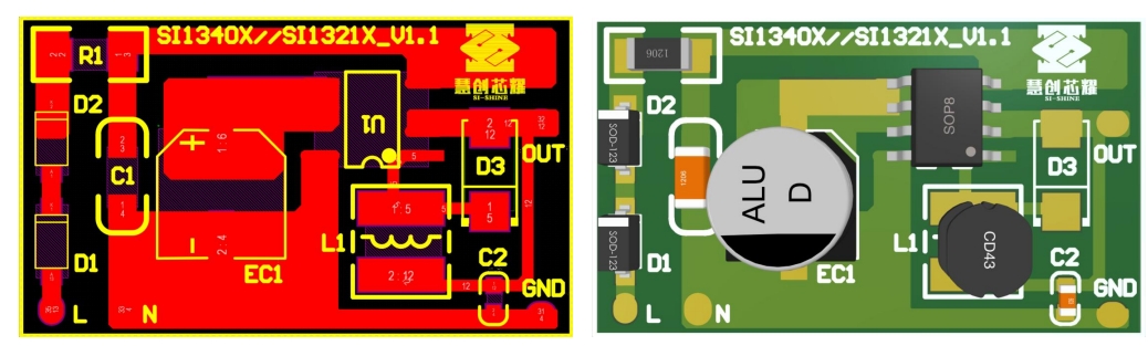 SI13213L/H和SI13215L/H是慧創(chuàng)芯耀(Si-Shine)推出的非隔離降壓恒壓芯片,專(zhuān)為智能家居等應(yīng)用場(chǎng)景設(shè)計(jì)。SI13213L/H提供3.3V的輸出電壓,而SI13215L/H則提供5V的輸出電壓。兩款芯片均具有寬輸入電壓范圍(85-305VAC)、低輸出紋波、低待機(jī)功耗(小于50mW)等特點(diǎn),并且無(wú)需π型濾波或安規(guī)電容即可通過(guò)EMI測(cè)試,大大簡(jiǎn)化了外圍電路設(shè)計(jì)。