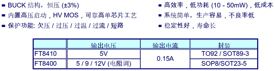 高效率與低功耗:在10 - 50mW的功耗范圍內,FT8400與FT8410能夠實現高達65% - 70%的轉換效率。