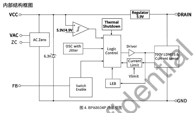 BPA8604P是晶豐明源推出的高集成度反激電源芯片,主打微波爐、電磁爐等家電輔助電源市場。它把700V高壓MOS、控制器、過零檢測電路集成到一顆DIP-7芯片里,外圍極簡,還能輸出交流過零信號控制繼電器,避免打火。